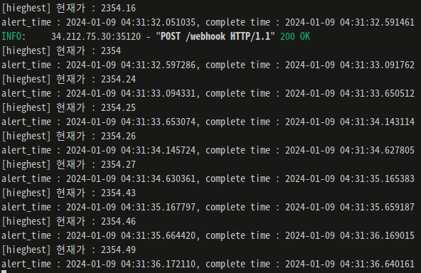 - 시간을 보게되면 4시 31분 31초에 한 번에 많은 주문(alert_message)이 들어온것을 볼 수 있습니다. 하지만 이제 동기적으로 코드를 짠 경우 하나의 alert 에 대해서 체결이 완료되어야지만 다음 alert 가 체결되기때문에 31초에 발생한 alert가 주문이 밀려 35초에 체결된것을 확인할 수 있습니다.