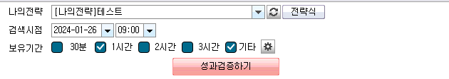 - 조건검색을 이용해서 분단위로 성과 검증을 하려면 아래 작업을 수작업으로 일일이 확인해주어야합니다. (9시 1분, 2분, 3분, ... 이런식으로 쭈욱 클릭해줘야합니다.)