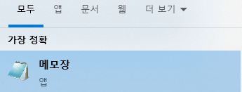 - 왼쪽 아래 찾기를 클릭한 뒤 메모장을 검색하고 실행합니다.