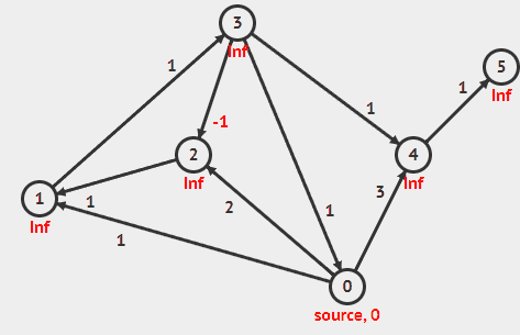 - 초기 설정 : 시작 정점의 거리 값을 0으로, 다른 모든 정점의 거리 값을 무한대로 설정합니다.