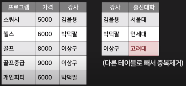 - 정규화를 간단하게 말하면 데이터가 중복된다고 하면은 여러 테이블로 분리시켜 주는 것입니다.