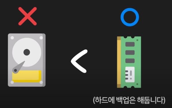 - ram(메모리)이 하드디스크보다 훨씬 빠르기 때문