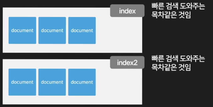 - 평소에 사용하던 기존 DB에서 데이터를 뽑아서 여기에다 입력을 하면 인덱스를 생성한 뒤 보관해 줍니다. 그래서 이제 검색 요청이 들어오면 인덱스를 이용해 자료 검색을 도와줍니다.