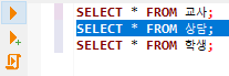 - SQL 작성 후 - 좌측에 실행 버튼을 통해 실행 가능