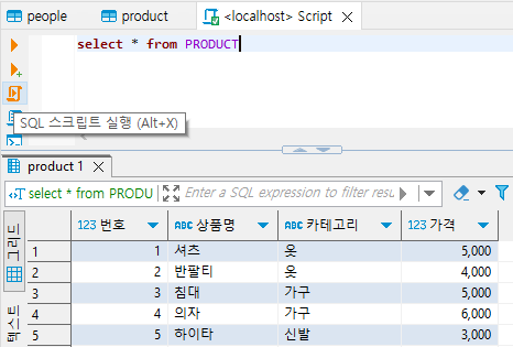 - 여러 줄로 작성된 SQL 스크립트에서 특정 부분만 실행하기 (해당 부분을 드래그 하고 SQL 스크립트 실행이 아닌 SQL문 실행 버튼 클릭)