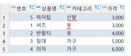 - 카테고리 내용이 같으면, 가격 DESC 순으로 정렬해 줍니다.