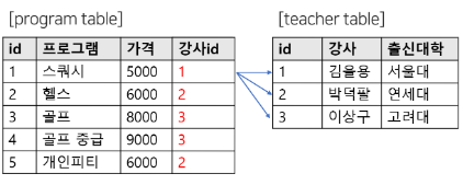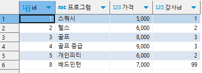 - program의 강사id 컬럼과 teacher id 컬럼이 같은 행만 출력하도록 필터링 작업을 진행해주어야합니다.