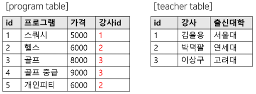 SELECT * FROM program INNER JOIN teacher ON program.강사id=teacher.id