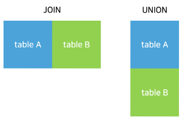 SELECT * FROM 테이블1 UNION SELECT * FROM 테이블2; - JOIN은 테이블을 양 옆으로 붙이고 싶을 때 사용했습니다. 이와 달리 UNION은 테이블을 위아래로 붙이고 싶을 때 사용합니다.