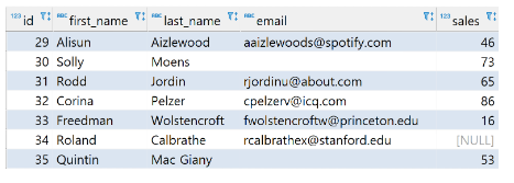 - 아래 user_sales 테이블에서 이메일란이 공백인 곳에 일관적으로 test@test.com입력하기. 단, first_name이 Solly인 사람은 admin@test.com으로 기입해야합니다.