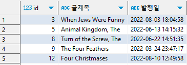 SELECT * FROM blog WHERE 발행일 = '2022-03-10 08:24:25'
