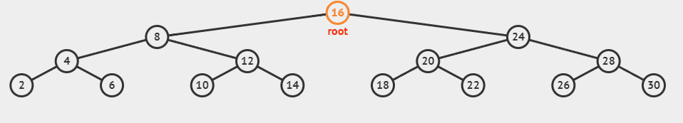- 16 - 8 - 4 - 2 - 6 - 12 - 10 - 14 - 24 - 20 - 18 - 22 - 28 - 26 - 30 순서로 방문합니다.