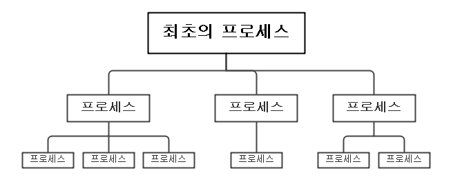 - 컴퓨터가 부팅될 때 실행되는 최초의 프로세스가 자식 프로세스들을 생성하고, 생성된 자식 프로세스들이 새로운 프로세스들을 낳는 형식으로 여러 프로세스가 동시에 실행되는 것입니다.