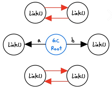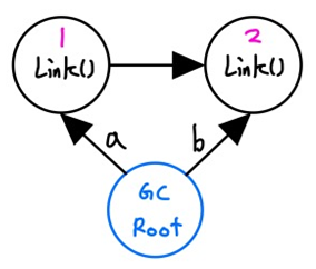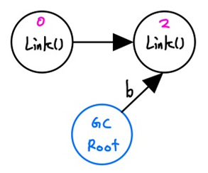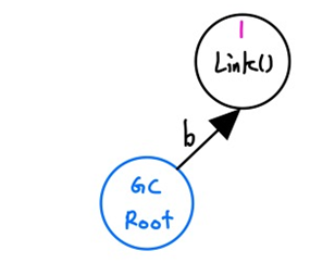 - a,b가 다른 객체를 지정하면서 기존의 Link()들은 더이상 접근할 수 없는 형태로 메모리에 남아있게 됩니다.