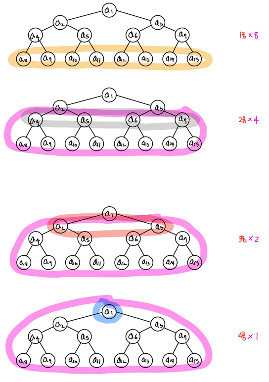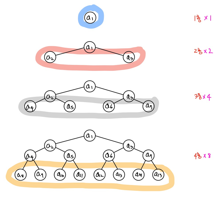 - O(NlogN)의 경우는 O(log1 + log2 + log3 + log4 + ... + logn) = O(NlogN)이 되는 것입니다. (앞에서부터 체크)