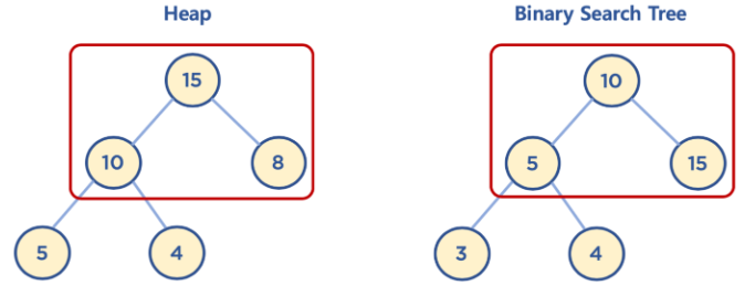 힙과 이진 탐색 트리(BST, Binary Search Tree)의 공통점과 차이점
