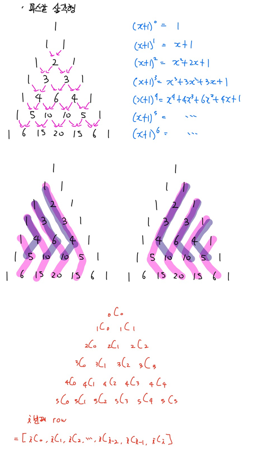 - 파스칼 삼각형의 수학적인 성질을 이용하는 것입니다.