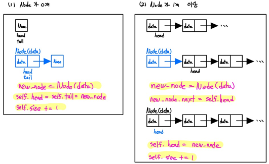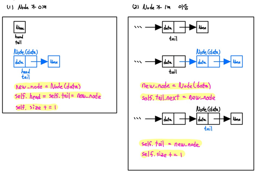- Linked List 마지막에 data 추가 : O(1)