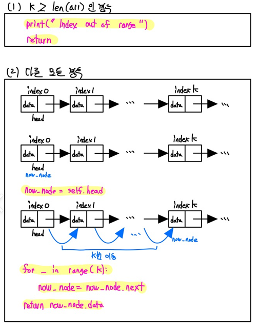 - 특정 인덱스 값에 접근 : O(n)