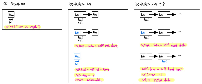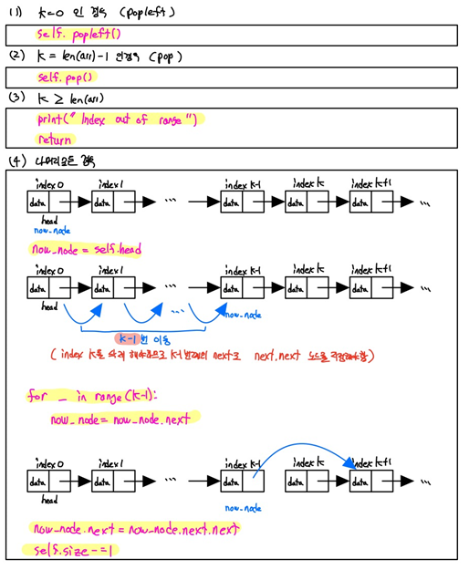 - 삽입할 때와 마찬가지로 Array처럼 전체 배열을 움직일 필요 없이 address만 수정해 주면 됩니다.