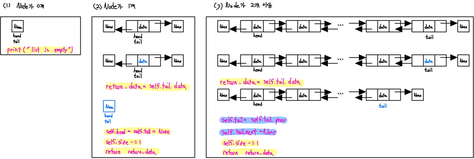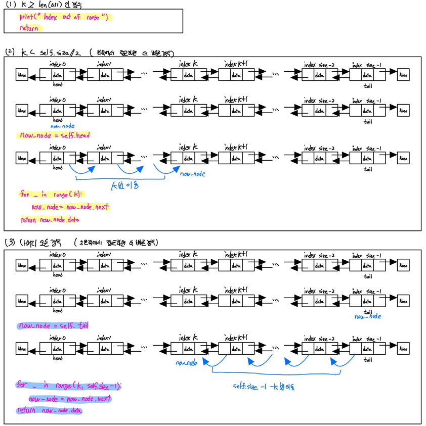 - 뒤에서부터 접근이 가능하기 때문에 pop 코드가 단순화 되고, find_index, insert_index, delete_index 코드가 왼쪽과 오른쪽에서 접근이 가능해져 조금더 빠른 탐색이 가능해집니다.