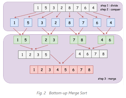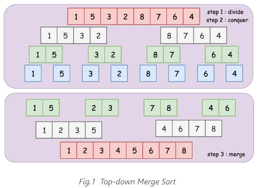 - 병합 정렬은 분할 정복을 이용한 비교 기반 정렬입니다.