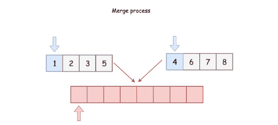 - 두 배열을 앞쪽부터 비교해 더 작은 값을 새로운 배열에 넣어줍니다. 이와 같은 과정을 계속 반복해서 진행하다가 한쪽 배열이 비게 될 경우, 나머지 한쪽 배열의 남은 값을 새로운 배열에 이어서 넣어줍니다.