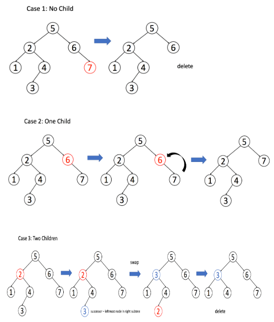 - 만약 왼쪽 서브트리가 없으면 해당 오른쪽 서브트리의 루트 노드를 해당 자리로 옮겨주면 됩니다.