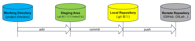- "git add"를 통해 현재 프로젝트 폴더에서 작업된 내용을 Staging Area에 올릴 수 있습니다.