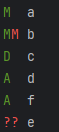 - "git status -s" 의 경우 두 개의 글자로 현재 상태를 표시합니다.