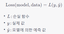 - 손실 함수(Loss function)는 1개의 train sample에 대한 오차를 측정합니다. (즉, 모델의 예측 값과 실제 값 사이의 차이를 나타냅니다.)