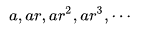 - 초항이 a이고 공비가 r인 등비수열은 다음과 같습니다.