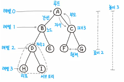 - 트리는 n개의 노드와, n-1개의 간선으로 이루어져 있습니다.
