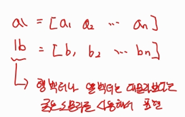 - 행렬 곱셈의 또 다른 방법입니다. (참고용으로 알아두기. 기본적으로는 기본 행렬 곱셈 방식을 많이 사용)