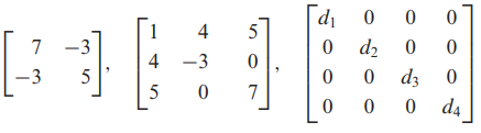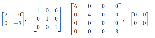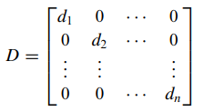 - 주대각선 이외의 모든 원소들이 0인 정방행렬을 대각행렬(diagonal matrix)이라고 합니다.