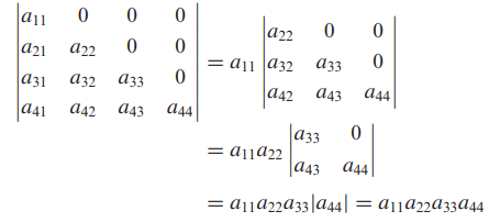- 즉, A가 n x n 삼각행렬(상삼각, 하삼각, 또는 대각)이면, det(A)는 행렬의 주대각선 상의 원소들의 곱입니다.