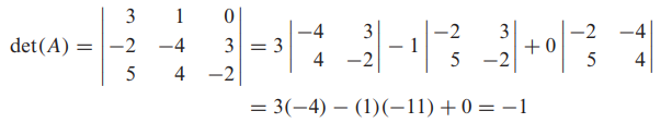 - 계산을 최대한 간단하게 하기 위해서 최대한 0이 많은 행이나 열을 찾아야 합니다. 행렬 A는 2열이 0이 3개로 가장 많다는 것을 확인할 수 있습니다. 이를 통해 행렬식을 구해보면 다음과 같습니다.