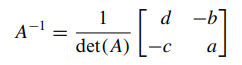 - 이 행렬이 가역행렬이기 위한 필요충분조건은 ad-bc ≠ 0이고, 2x2 행렬 A의 행렬식(determinant)은 ad-bc입니다.