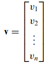- 지금까지 벡터를 v = (v1, v2, ..., vn)의 기호로 쓰고 쉼표로 분리된(comma-delimited) 형태로 작성하였습니다.