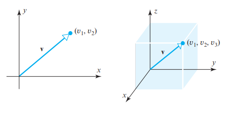 - 성분이 (v1, v2)인 2차원 벡터 v는 v = (v1, v2)로, 성분이 (v1, v2, v3)인 3차원 벡터 v는 v=(v1, v2, v3)으로 나타냅니다.