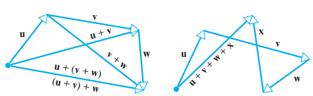 - 벡터 덧셈은 덧셈에 대한 결합법칙을 만족합니다.