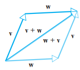 - v + w 는 w에 의한 v의 평행이동 또는 v에 의한 w의 평행이동이라고 합니다.
