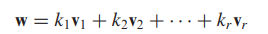 - 이는 새로운 벡터 w를 v1, v2,.., vr의 일차결합(linear combination)이라 합니다.