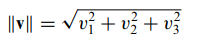 - 2차원과 3차원에서의 벡터의 놈은 피타고라스 정리에 의해 다음과 같습니다.