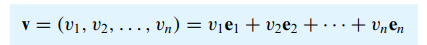 - R^n의 모든 벡터 v = (v1, v2,..., vn)은 다음과 같이 쓸 수 있습니다.
