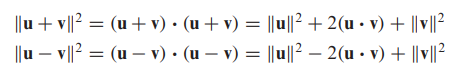 - u와 v의 점곱(dot product), 또는 유클리드 내적(Euclidean inner product)은 u · v로 나타내고 다음과 같이 정의됩니다.