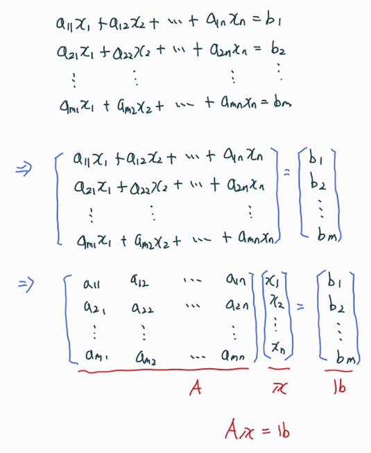- 여기서 A는 계수행렬(coefficient matrix)이고 첨가행렬까지 되려면 b 벡터까지 첨가되어야지 첨가행렬(augmented matrix)이 됩니다.