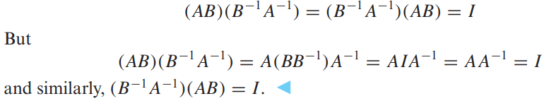 - 행렬 A와 B가 같은 크기의 가역 행렬이면 AB는 가역이고 (AB)^(-1) = B^(-1)A^(-1)입니다.