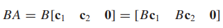 - 위 행렬 A가 특이행렬임을 보이기 위해서 AB=BA=I를 만족하는 어떠한 3 x 3 행렬 B도 존재하지 않음을 보여야 합니다. 이를 위해서 c1, c2, 0를 A의 열벡터로 놓겠습니다. 그러면 임의의 3x3 행렬 B에 대해서 다음과 같이 표현됩니다. 0으로 된 열이 있다는 것은 BA≠ I 임을 의미하므로 A는 가역이 아닙니다.