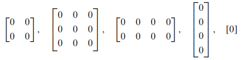 - 다음과 같이 모든 원소가 0인 행렬을 영행렬이라고 합니다.